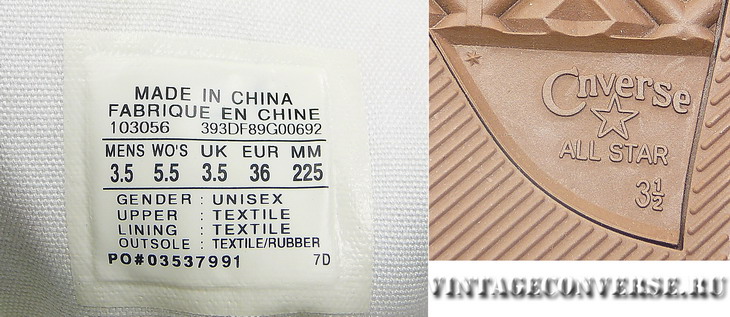 И самое главное несуществующий артикул - 103056. Вернее вы можете найти по нему эту модель конверсов , но только на китайских аукционах и т.д. ( и некоторых Российских магазинах ). Нигде , не на официальном сайте converse , не в солидных американских или европейских интернет магазинах эта модель не представлена. А это весьма весомый фактор в определении подлинности. Снова обратите внимание на размерную таблицу кед converse . В настоящих оригинальных кедах converse , размер ( последняя колонка таблички ) всегда указан только в СМ ( сантиметрах ) , а не в ММ как на подделках.