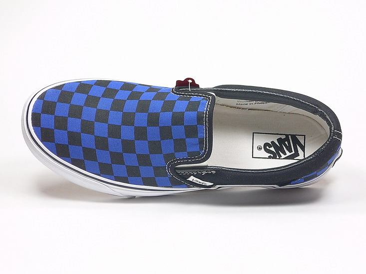 кеды слипоны Vans (Checkerboard) Black / Royal Blue (102)